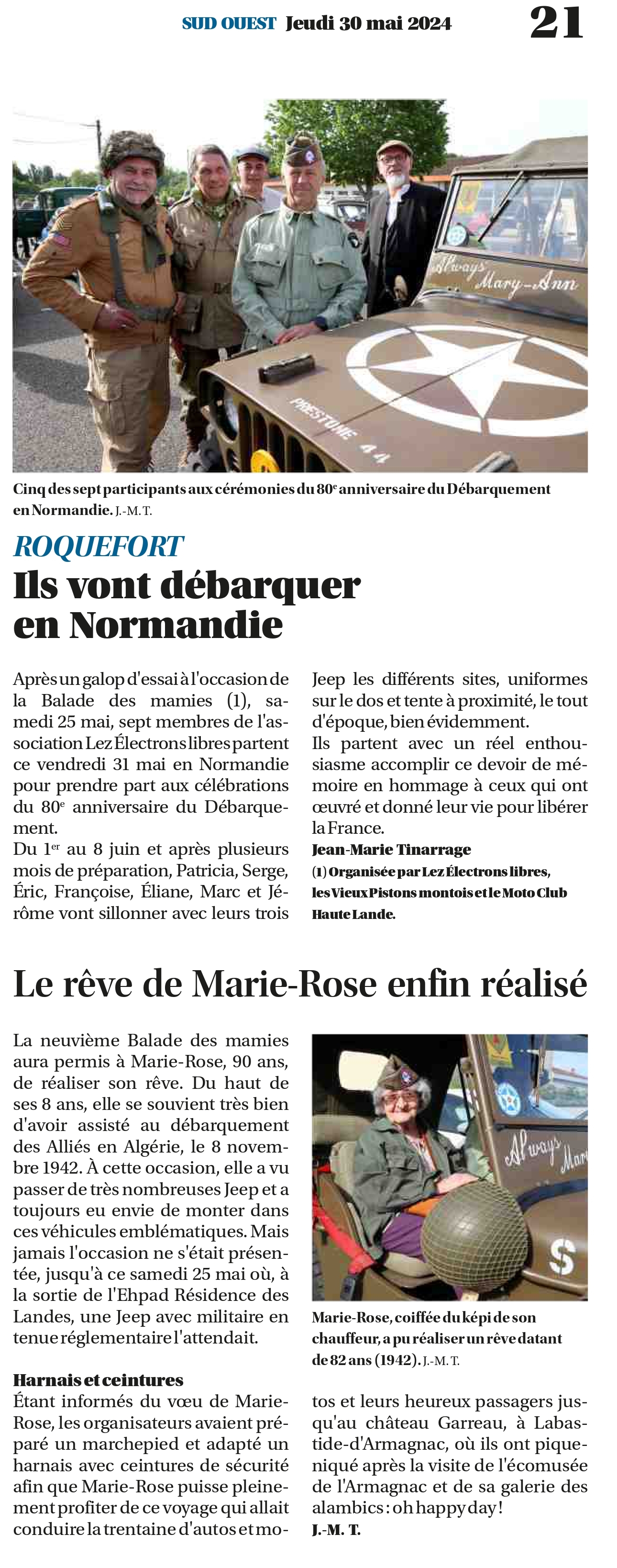 Les Vieux Pistons Montois remercient tous ceux qui ont participé à la réussite de cette journée : la famille Garreau pour leur accueil et leur enthousiasme, mais aussi "Lez Électrons libres", le Moto-Club de la Haute Lande de Labrit et le personnel de l'Ehpad de Roquefort.
